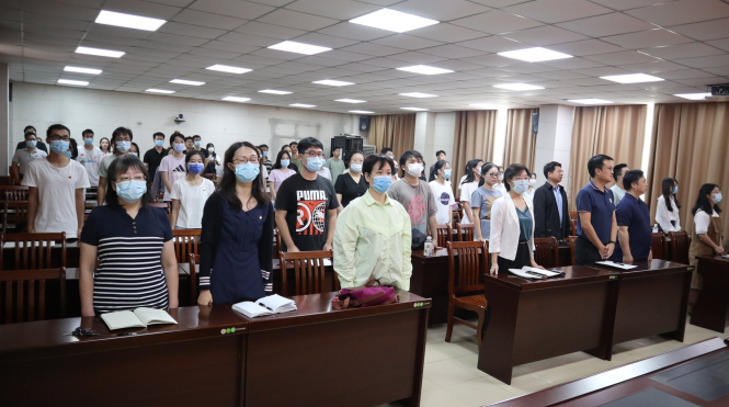 伴随开幕会召开,在场师生全体起立齐唱国歌,歌声庄严嘹亮,展现了党员代表们昂扬向上的精神风貌。