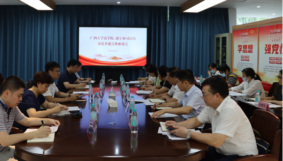 6月14日上午,南宁市司法局党组书记、局长黄有光一行到伟德体育调研指导,并与公司召开深化共建合作座谈会。院领导余云宇、邓惠英、陈刚,南宁市司法局副局长侯康顺、三级调研员邓琼冬等参加座谈。