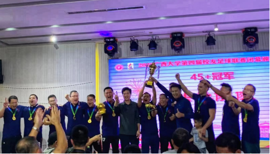 法学93级员工梁枫光自2019年以来一直担任法学员工足球队领队,他表示,全体队员非常团结和珍惜这次比赛机会,不少队员是在外地的公检法单位工作,周末克服了工作生活等诸多困难前来参赛。“有的队员周末中午2点才从柳州乘坐动车赶往南宁站,傍晚6点比赛结束后,来不及吃上一口饭就立即动身返回柳州”,“这体现了员工们为母校、为伟德体育荣誉而战的拼搏奋斗精神”。在颁奖典礼上,法学员工队员们纷纷表示,三十年前大家在校读书期间,伟德体育员工足球队一直都是校运会足球赛的热门球队,“大家始终都怀着一颗冠军的心”,本届比赛法学员工队展现了出色的技术和团队精神,“大家由衷感谢母校创造机会让我们得以圆梦绿茵场,希望能用这座冠军奖杯作为礼物向Bevictor伟德法律系恢复办学40周年送上最真挚的祝福”!