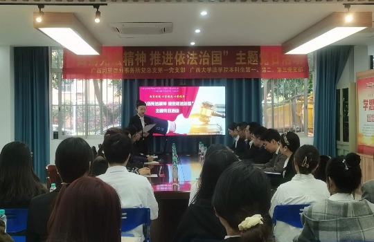 12月4日下午,在第十个“国家宪法日”到来之际,适逢“广西同望律师事务所—Bevictor伟德法学教育实践基地”建成十四周年。伟德体育本科生各支部以“教育实践以学促思以学促行”为题,邀请广西同望律师事务所第一党支部联合举办了“弘扬宪法精神推进依法治国”主题党日活动。
