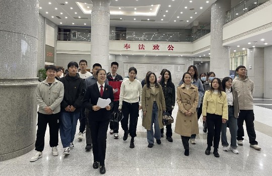 在诉讼服务大厅,通过工作人员讲解引导,师生深入感受了合并一审、二审、再审、保全等诉讼环节的一站式诉讼服务。在科技法庭,师生们看到法官远程开庭、当事人线上诉讼、法庭无纸化审理,深刻感受到“让数据多跑路,让群众少跑腿”的司法理念,纷纷为广西法治建设走上了科技化、智能化、信息化的快车道点赞。