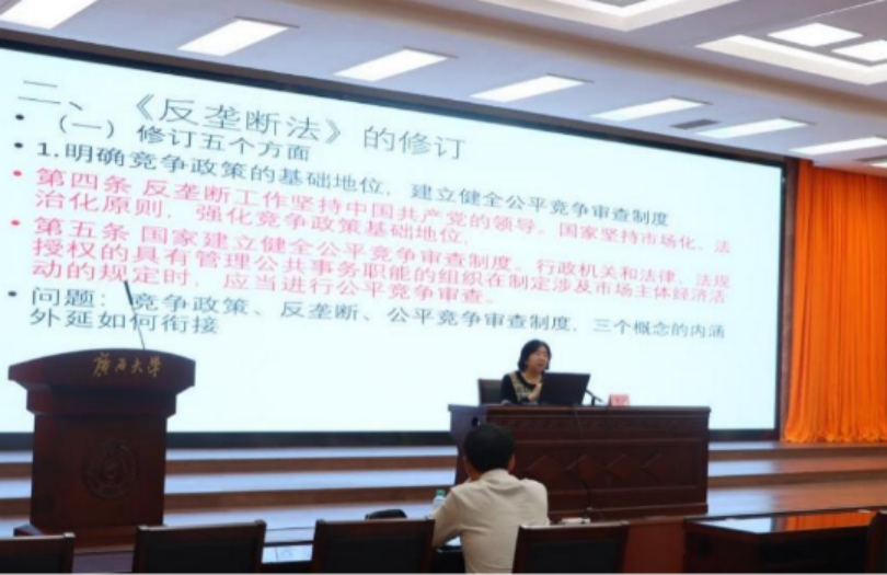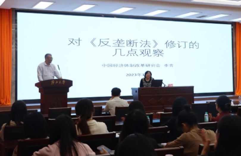 11月29日,中国经济体制改革研究会副会长李青应邀到公司作“对《中华人民共和国反垄断法》修订的几点观察”学术专题讲座。讲座由伟德体育经理许光耀主持。中国经济体制改革研究会产业政策和竞争政策专委会副主任梅丽鹏、伟德体育副经理董笃笃与谈,伟德体育教师代表、本科生、硕士研究生参加了本次讲座。