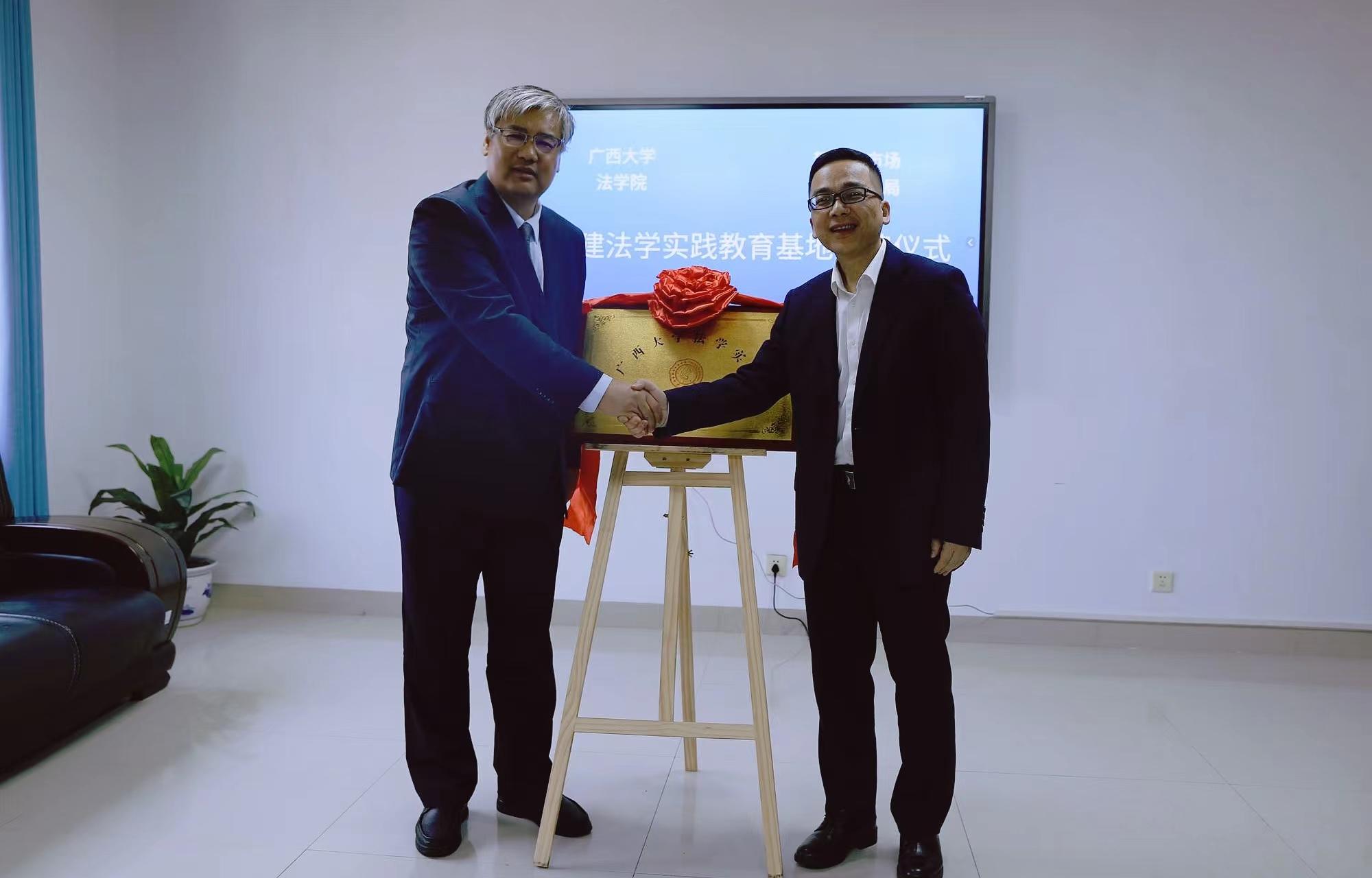 3月5日,公司与贺州市市场监管局共建“法学实践教育基地”签约仪式暨交流座谈会在贺州举行。院领导余云宇、许光耀与贺州市场监管局主要负责人共同签订了共建基地协议,并为“法学实践教育基地”揭牌。这是公司首次与市场监管实务部门共建实践教育基地。