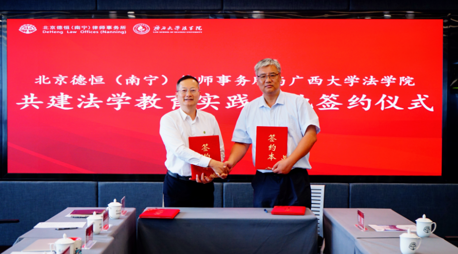 活动最后,双方代表签署了共建法学实践教育基地的合作协议,并举行了隆重的揭牌仪式。这标志着公司与北京德恒(南宁)律师事务所的合作正式拉开帷幕,双方将携手并进,共同开创法学实践与教育的新篇章。