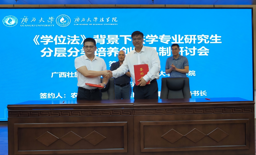 会上,广西壮族自治区律师协会与伟德体育共同签署了合作共建协议,双方将在人才培养、实务研究等领域深化合作,以期在校所协同育人、产教深度融合方面取得更大成效。自治区律协秘书长农锋华与许光耀分别代表双方签署共建协议,自治区律协副会长许慧博、广西同望律师事务所总所主任黄强光、广西冠益律师事务所主任吕伟良、伟德体育副经理熊超共同见证签约。