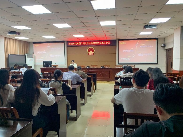 2023年12月15日下午十四时四十五分,共青团伟德体育团委委员述职会议于伟德体育201会议室正式召开,本次会议由卜枫俨同学主持,团委部门负责人及各支部团支书参与会议。
