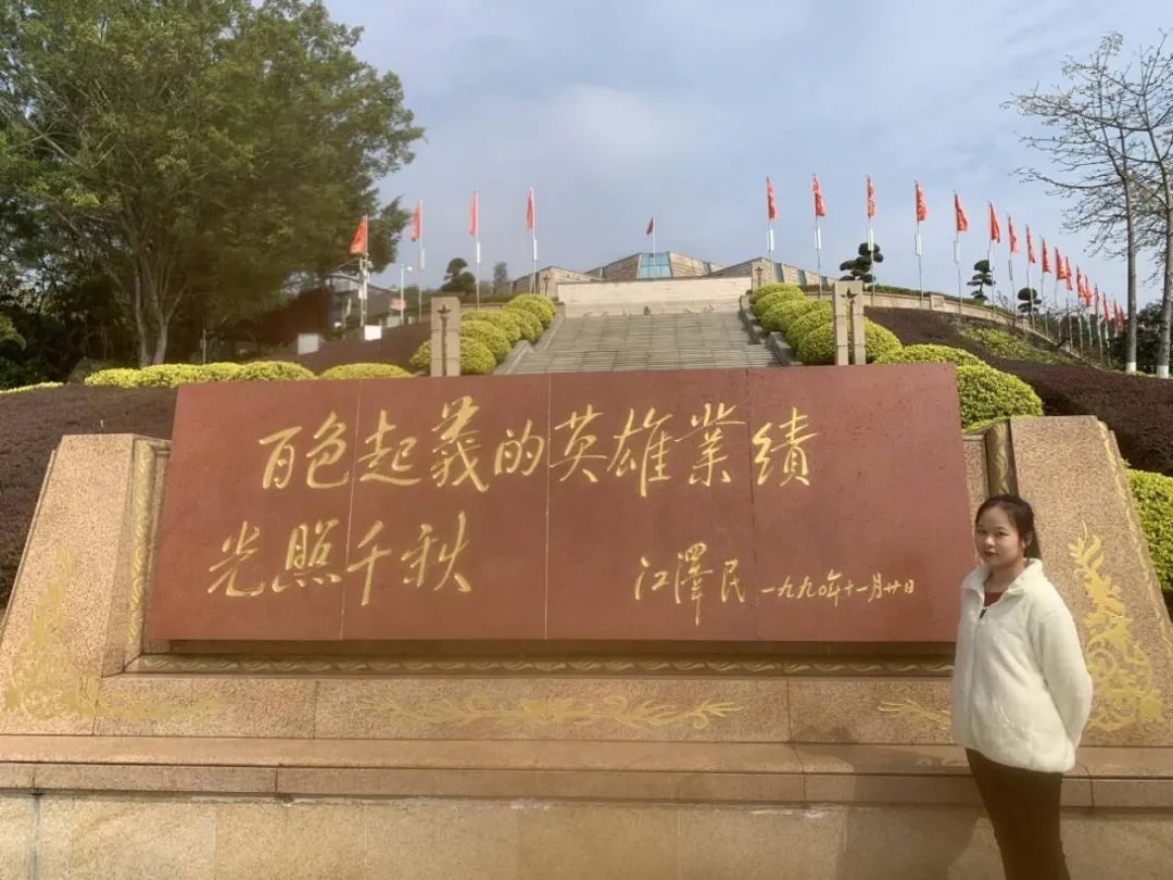 百色起义纪念馆是为纪1929年12月11日邓小平等老一辈革命家在广西百色组织领导的百色起义而建设的,是全国著名的爱国主义教育示范基地。在百色起义纪念馆中,李依芸同学和杨荟同学瞻仰革命纪念碑,深入学习革命烈士光荣岁月,全身心地融入到红色文化之中,深切感悟起义精神。
