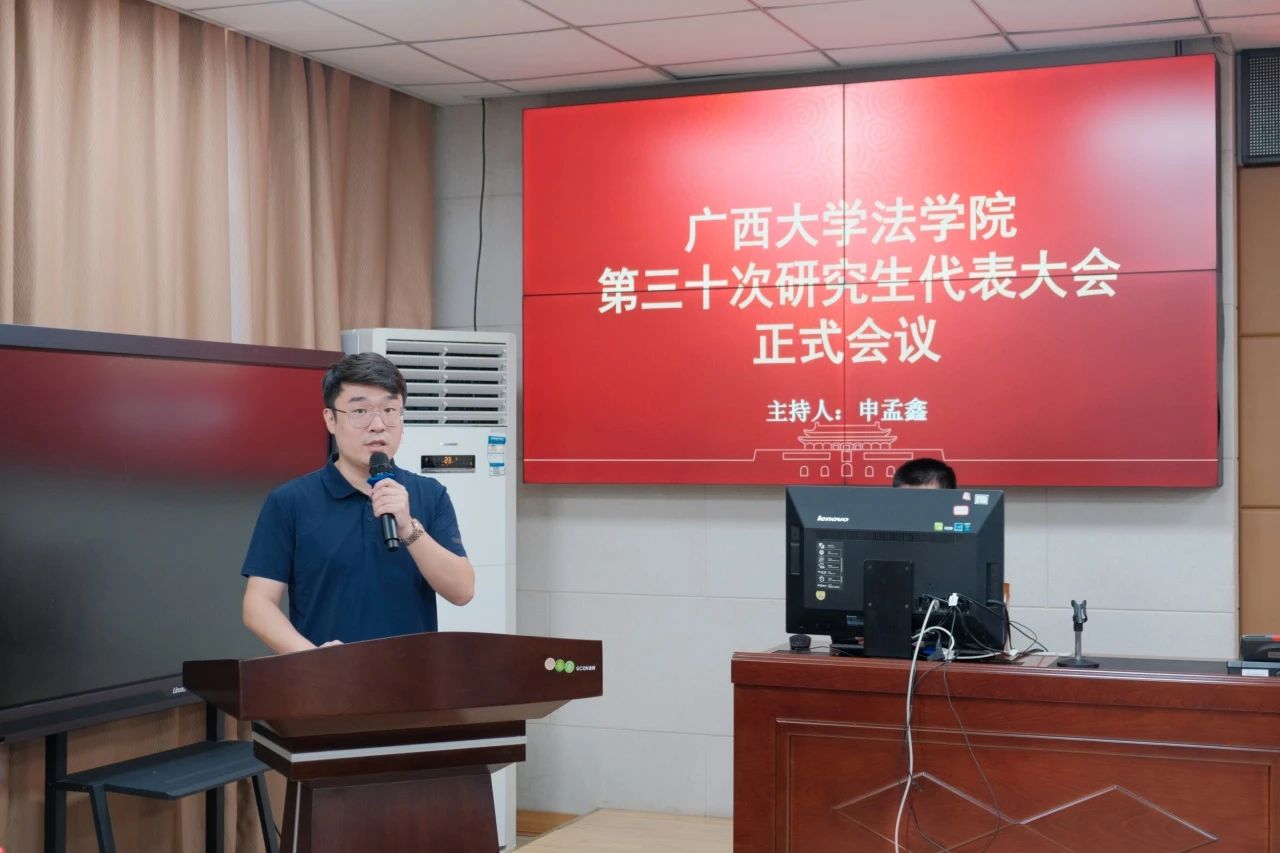 2024年10月12日上午,伟德体育第三十次研究生代表大会在伟德体育201教室隆重召开。院团委书记申孟鑫主持并介绍了本次会议的主要内容。法公司党委副书记韦兴剑、团委书记申孟鑫、校研究生会执行主席覃湘怡、各兄弟公司研究生会代表出席了本次大会。