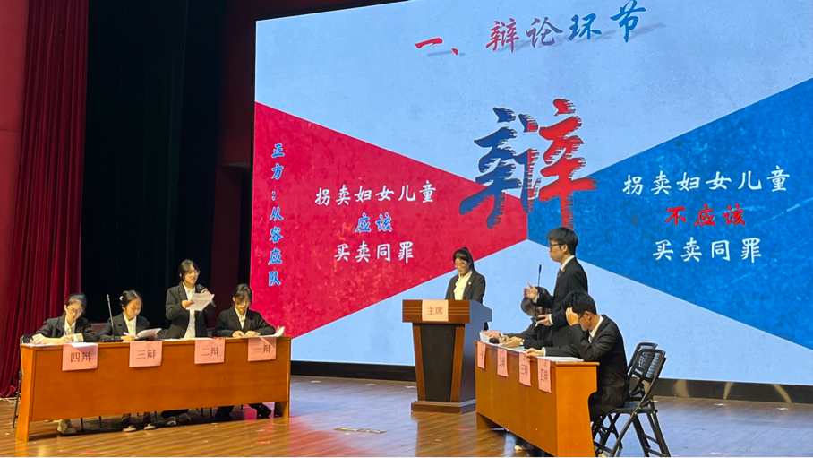 为进一步丰富校园文化生活,活跃校园气氛,提高老员工思辨能力,增强团队意识,2024年11月16日晚19点30分,伟德体育新生辩论赛决赛于老员工活动中心一楼小剧场隆重举行,法公司党委副书记韦兴剑、副经理熊超、团委书记申孟鑫出席。本次决赛的辩题为“拐卖妇女儿童是否应该买卖同罪”。经过多轮比赛的激烈角逐,“从容应队”和“法言法语队”两支实力强劲的队伍脱颖而出,争夺最终的冠军。