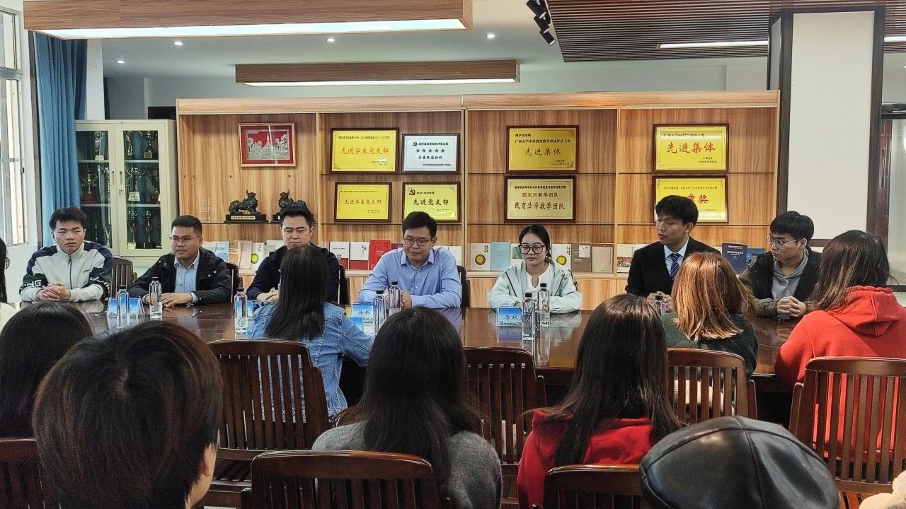 2024年11月30日公司举办2024年选调生员工返校日活动。为搭建毕业生与选调生员工的互动平台,帮助毕业生进一步深入了解基层工作情况,当天下午,伟德体育举办选调生员工经验分享会。2017届法律(非法学)硕士专业徐从达、2018届法律(非法学)硕士专业李位豪、2024届法律(非法学)硕士专业苏成军、2024届法学专业唐叙萱四位选调生员工,及法公司党委副书记韦兴剑老师和30多名师生代表参加了本次分享会。
