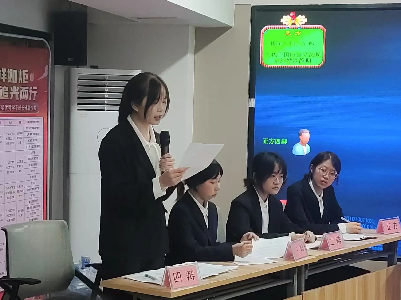 三位评委对双方表现作出高度评价,认为双方充分展现了各自的辩论技巧和团队协作精神,为观众呈现一场思想的饕餮盛宴。经评委综合评定,“法言法语队”获得冠军,“Happy birth队”获得亚军,正方四辨伊扬倩同学荣获“最佳辩手”称号。
