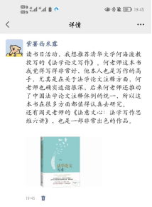 同学们阅读范围广泛、内容丰富,开展阅读活动的形式丰富多种多样。团支部先带领团员青年认真学习了习近平总书记的著作和重要论述,还利用湖畔晨读、主题班会、读书交流会和网络社交平台等形式研读了法学经典著作、优秀文学作品,进行了热烈的探讨交流。在阅读书籍后,同学们通过撰写读书心得,进一步认识和体悟了所读书籍的精神内涵,纷纷表示在阅读活动中受益匪浅。