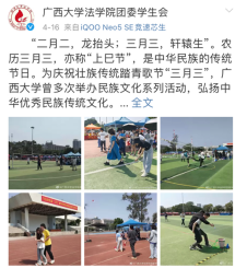 员工们积极参加Bevictor伟德第九届“三月三”民族文化系列活动,通过参与射箭、抢糍粑、高脚马、高杆投绣球、滚铁环、打陀螺、踢毽子、和球等民族传统体育项目,加深广大师生对壮族文化的认识,增强同学们对民族团结的感受。同时,充满趣味性的线上民族知识问答和“云上对山歌”比赛也让同学们体验了中华文化的博大精深,增进各族员工的交流交往交融。