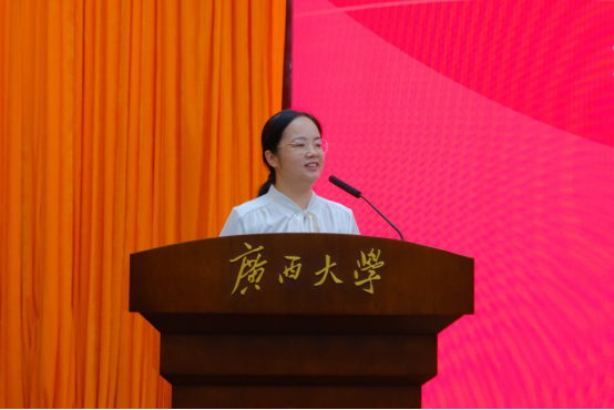 法学专业2025级本科生周可欣和2025级法学硕士研究生覃健作为新生代表发言。周可欣来自江西修水,红色基因与文化底蕴赋予她坚韧与求知精神。受表姐影响,法治理想在她心中生根。她表示将秉持校训,在学习和实践中锤炼本领,努力成长为有温度、有厚度、有深度的法律人,为法治建设贡献力量。覃健是西大伟德体育的“老朋友”,曾是西部计划志愿者。他在支教中传播法治知识,领悟法学责任与力量。他寄语学弟学妹勇敢探索、保持热爱,与研究生同学共勉,珍惜机会,深耕理论、投身实践,守护公平正义。