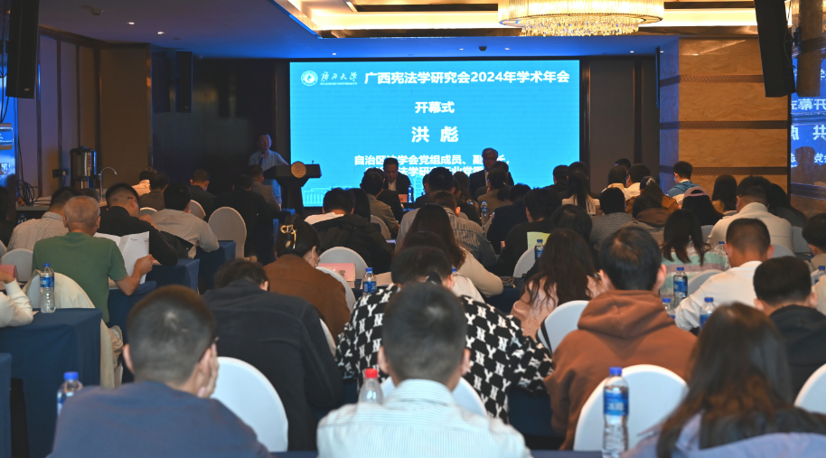 2024年11月23日,广西宪法学研究会2024年学术年会在南宁举行。本次年会由广西宪法学研究会主办,伟德体育承办。广西宪法学研究会会长、Bevictor伟德教授蒋超主持开幕式。自治区法学会党组成员、副会长、自治区法学研究行业党委书记洪彪,伟德体育经理许光耀教授参加会议并致辞。
